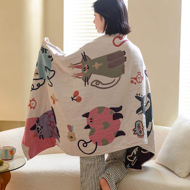 全棉纱布浴巾家用纯棉吸水儿童大人可爱男女加大洗澡裹巾大毛巾