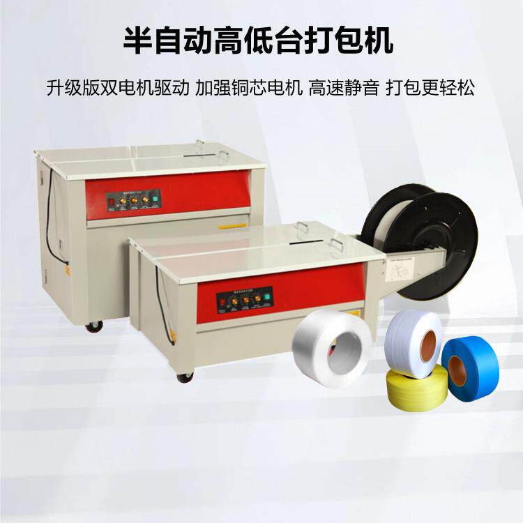 半自动高台打包机通用型PP带纸箱打包机纸箱静音捆扎机厂家由