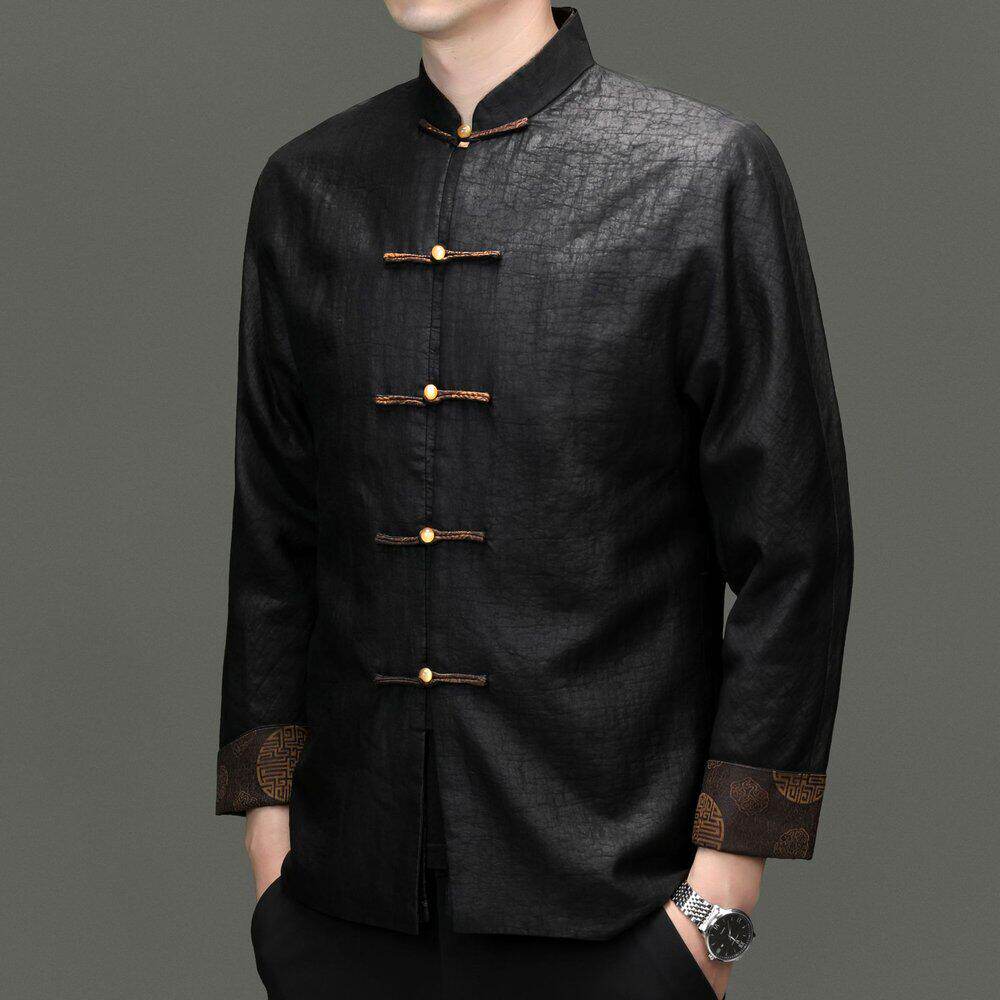 唐装 中式 复古盘扣苎麻衬衫 男长袖 亚麻外套薄 衬衣棉麻布衣服春夏季