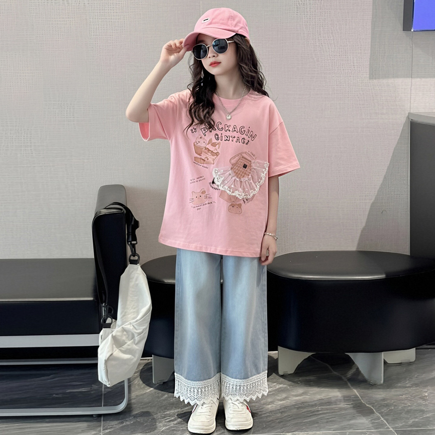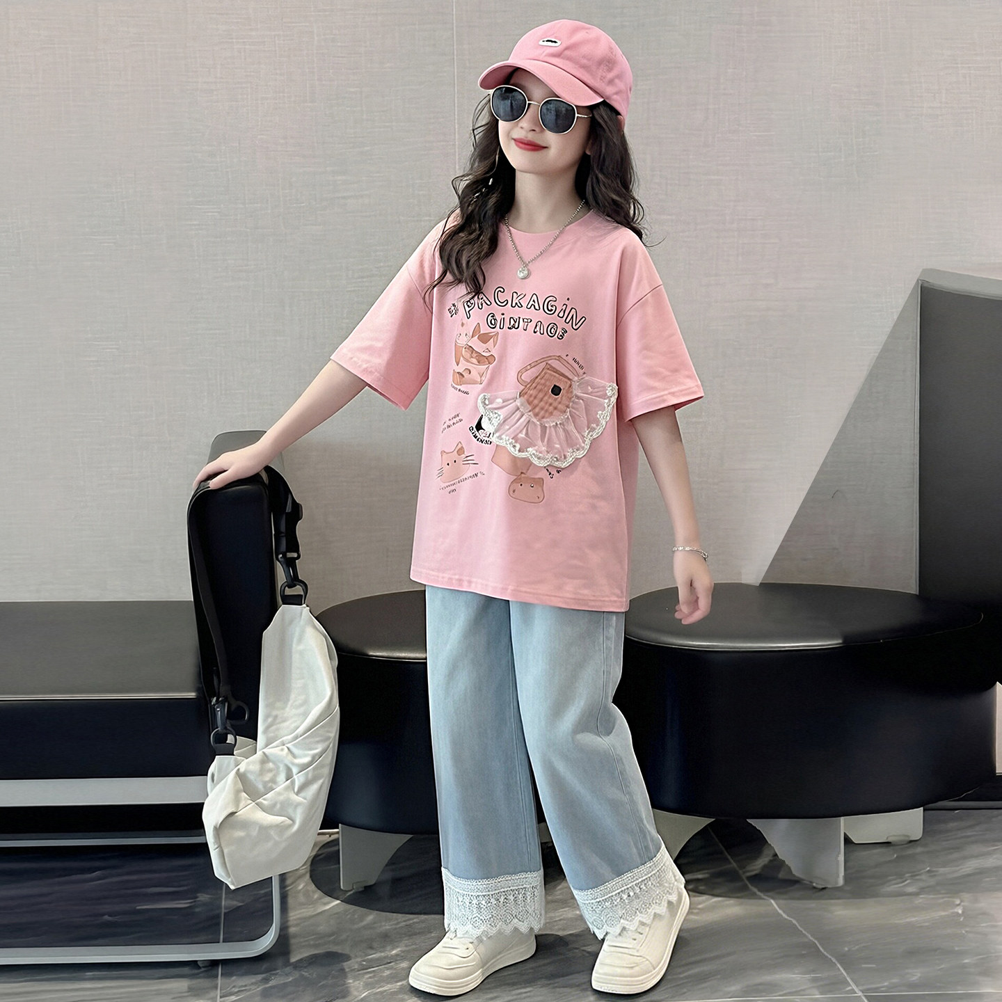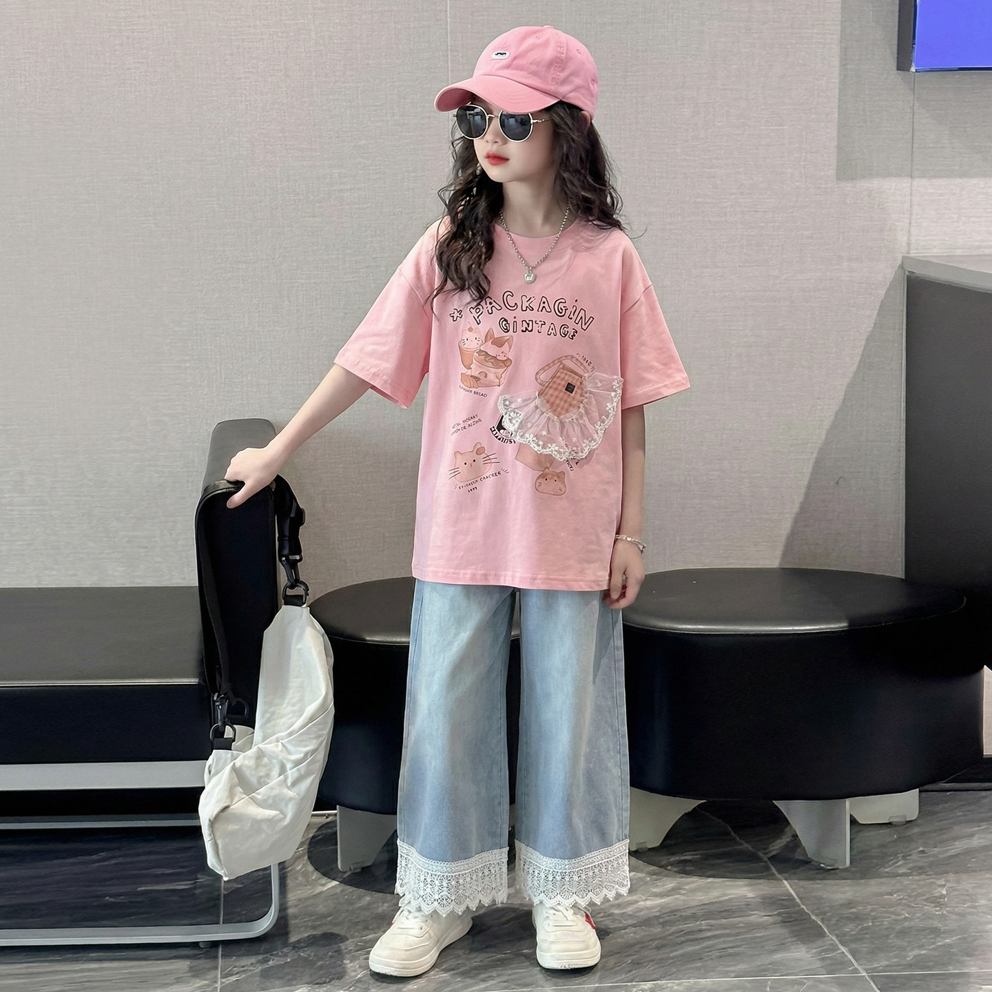 为您提供商品洋气儿童夏季 女大童夏装 套装 2026新款 两件套 小女孩休闲直筒牛仔裤的详细介绍,