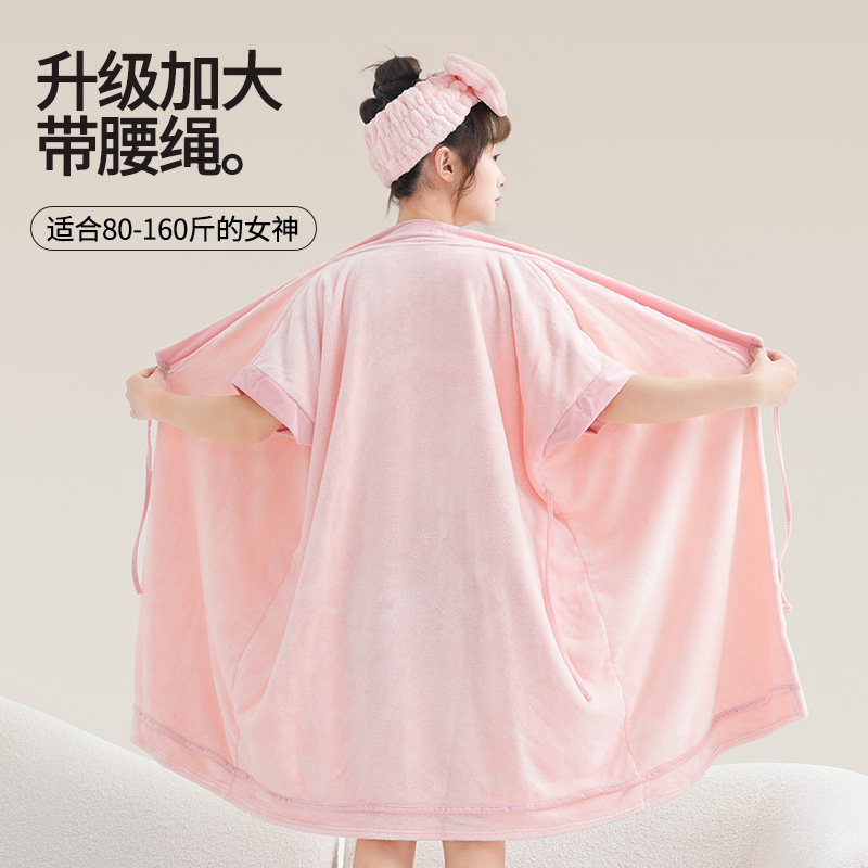 秋冬浴袍可穿浴巾女家用珊瑚绒吸水柔软速干浴裙洗澡睡袍睡衣连帽