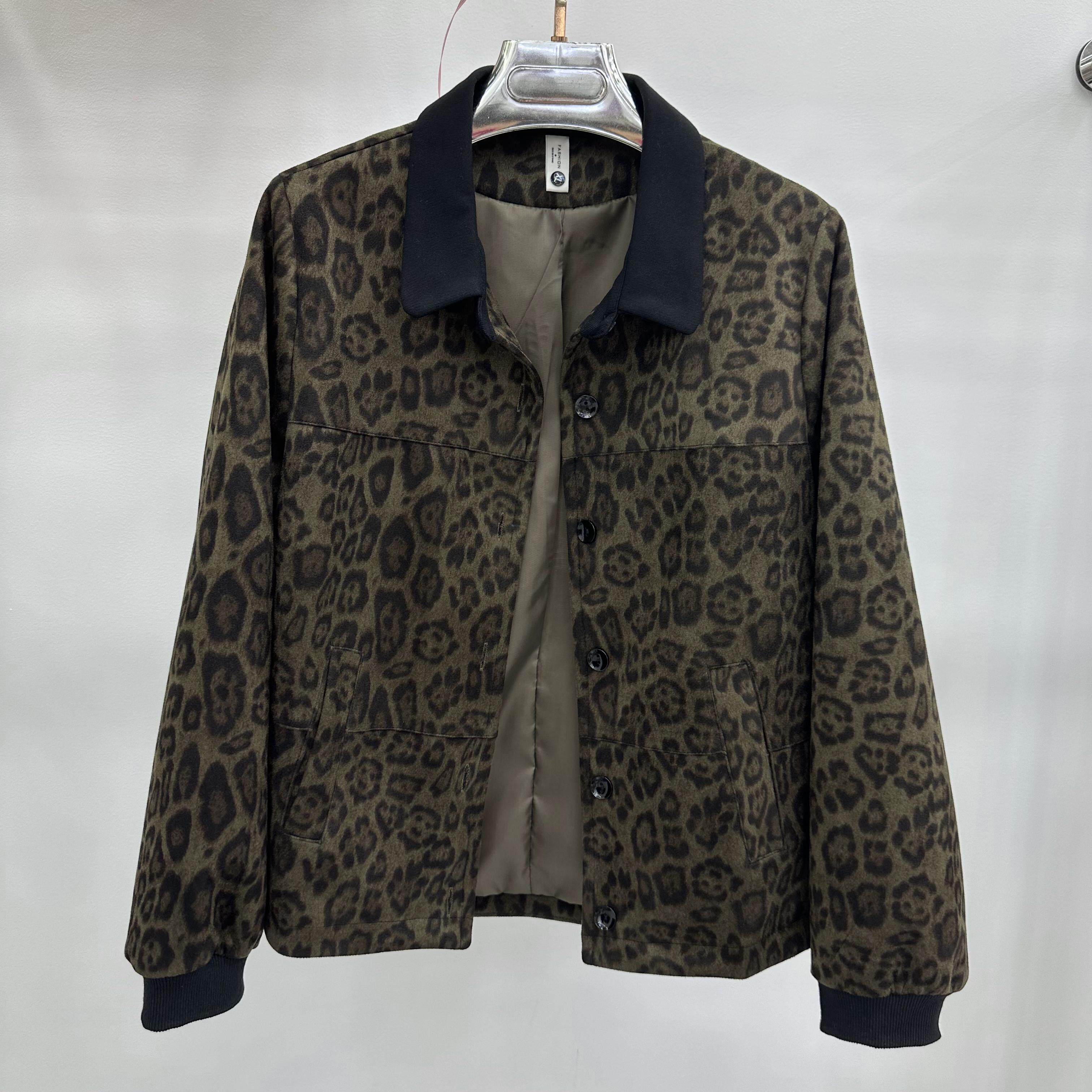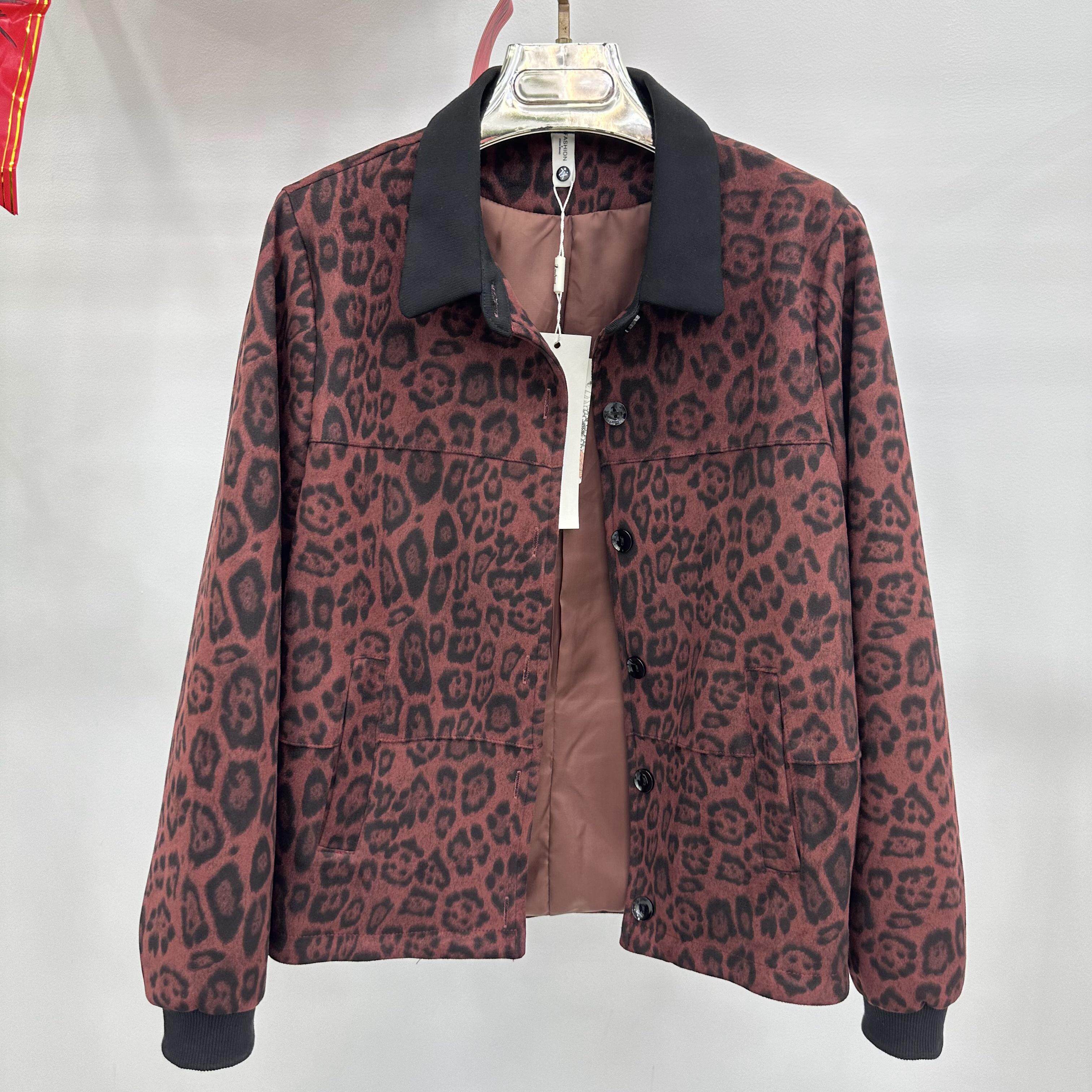 824B 时尚 奶奶装 短外套 女装 豹纹大码 秋季 新款 13专柜正品 翻领大码