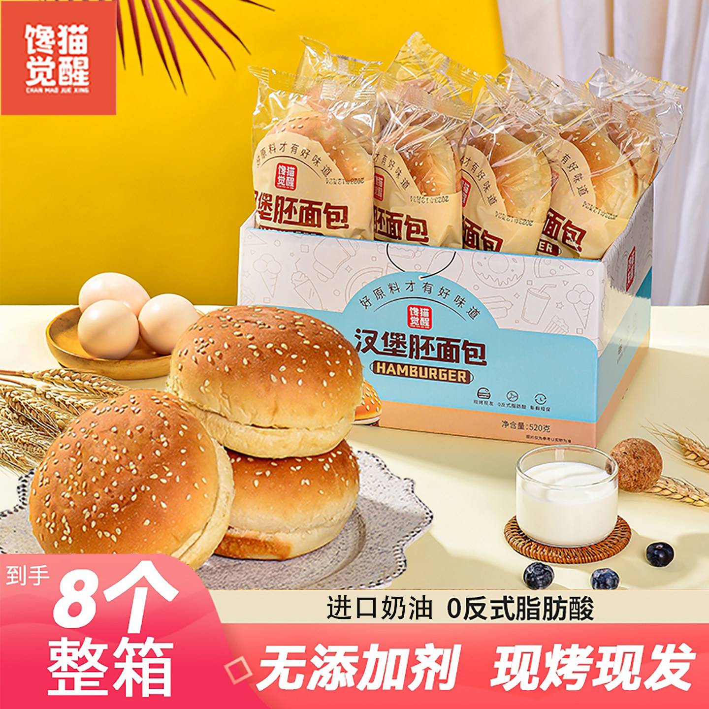 牛奶黄油面包家用汉堡速食营养早餐 馋猫觉醒汉堡包面包胚独立包装由