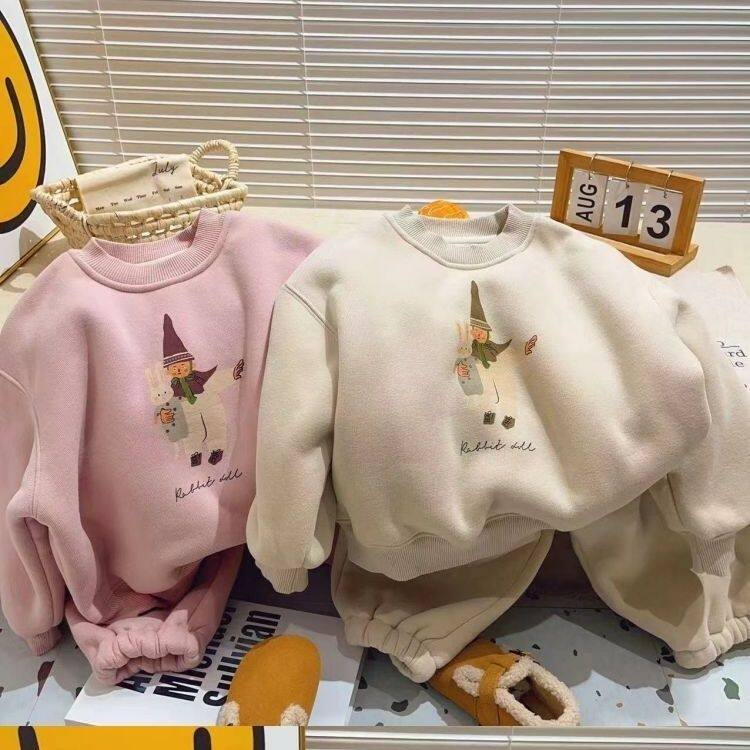 加绒加厚卫衣套装 儿童2025冬季 新款 韩风童装 两件套 女童洋气卫衣裤