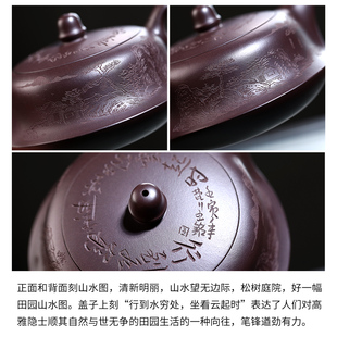 为您提供商品泡茶壶刻绘一帆风顺 宜兴紫砂壶原矿紫泥紫茄泥纯手工家用茶具套装的详细介绍,
