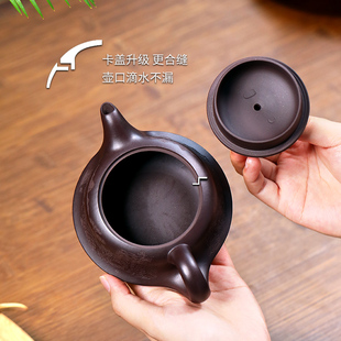 泡茶壶刻绘一帆风顺 宜兴紫砂壶原矿紫泥紫茄泥纯手工家用茶具套装由