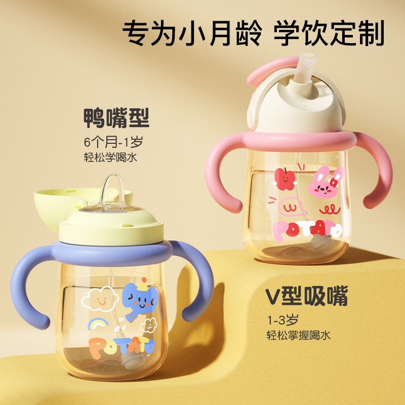 小土豆学饮杯婴幼儿鸭嘴杯6个月以上直饮PPSU儿童吸管杯宝宝水杯由