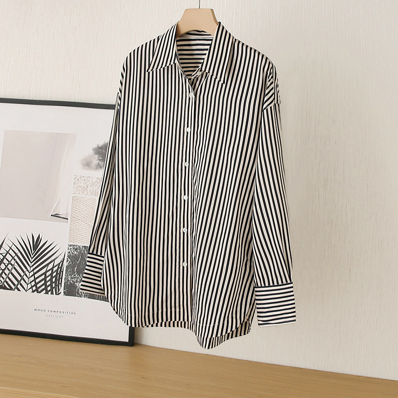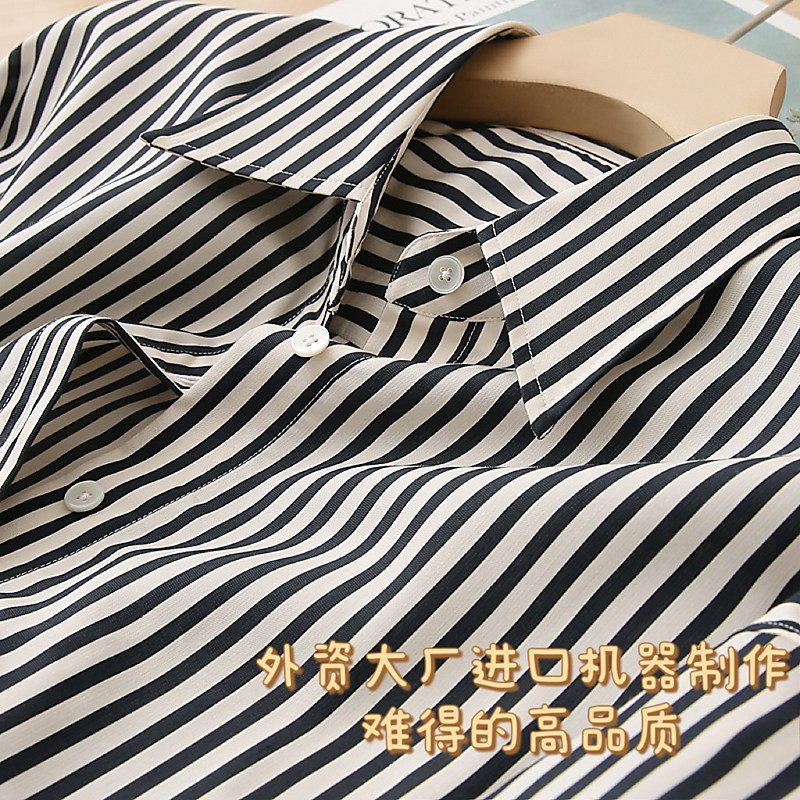 柔软不易皱 专柜定制 重磅色织人棉 高端绸缎质感 女 条纹衬衫