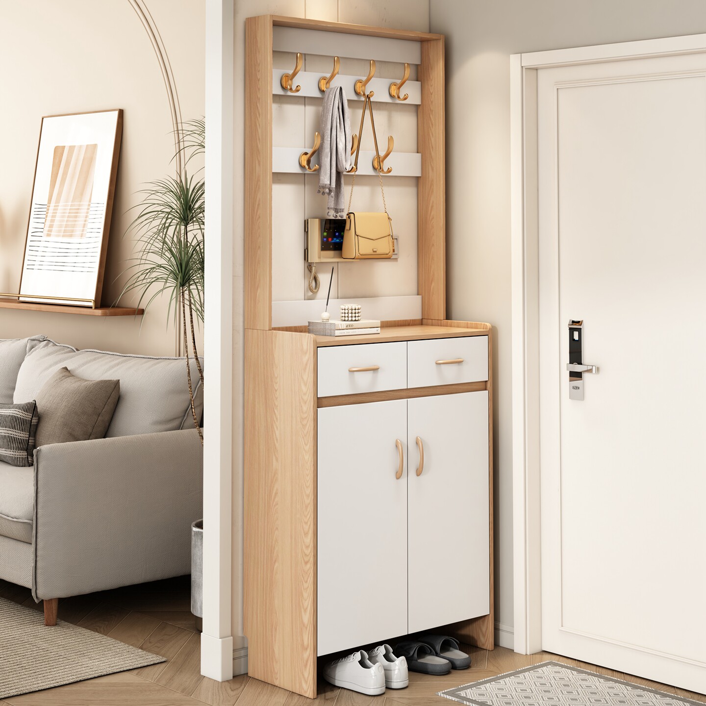 为您提供商品柜家用门口多功能门厅柜原木色带衣架大容量客厅储物柜 北欧实木鞋的详细介绍,