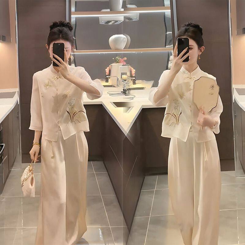 今年流行时尚 女夏装 新中式 国风高级感大牌洋气减龄上衣两件套 套装由