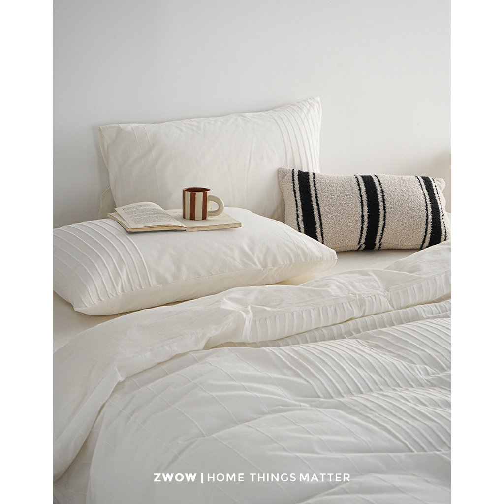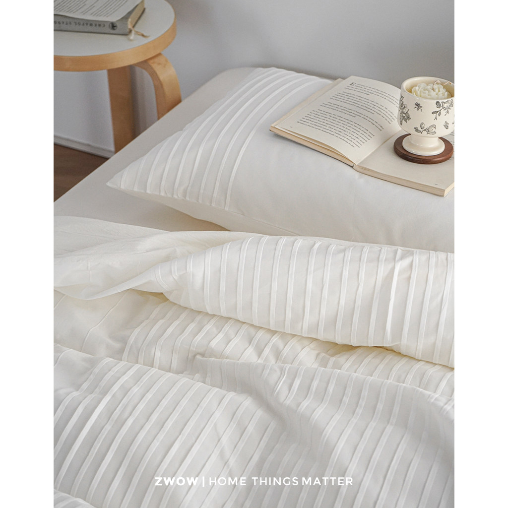 造卧zwow2025秋季 风琴百褶皱白色韩系少女简约轻奢全棉四件套 新款