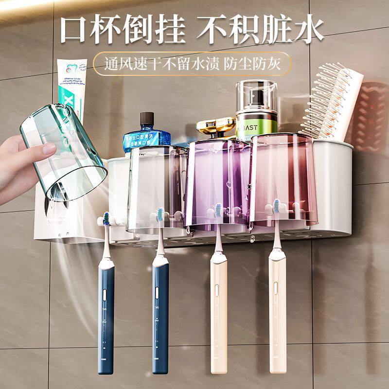 牙刷置物架免打孔卫生间漱口杯牙杯牙刷架子壁挂家庭牙具牙膏套装