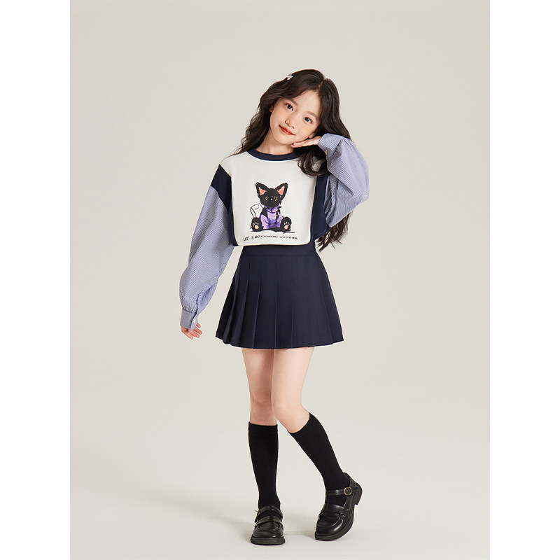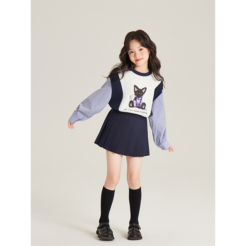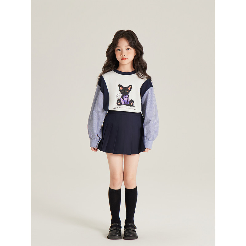 撞色条纹拼接衬衫 小众休闲卫衣 2025新款 Amybaby女童上衣冬季