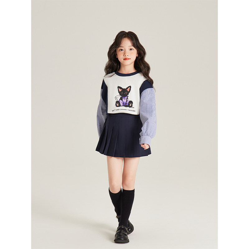 为您提供商品撞色条纹拼接衬衫 小众休闲卫衣 2025新款 Amybaby女童上衣冬季的详细介绍,
