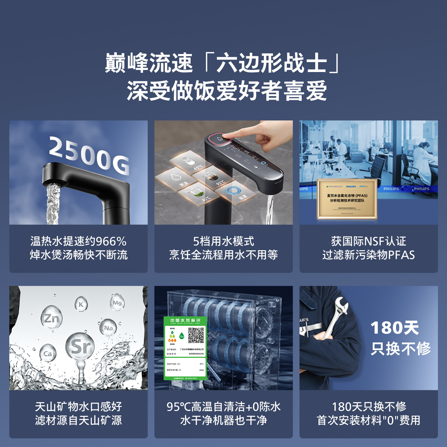 max 飞利浦加热净饮机2500G家用大通量即热矿泉pfas净水器U24pro