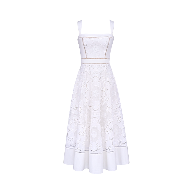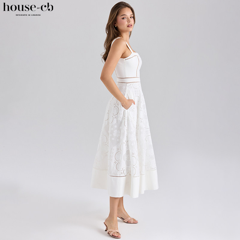CB轻盈优雅白色弹力棉英式 刺绣中长连衣裙Ava House
