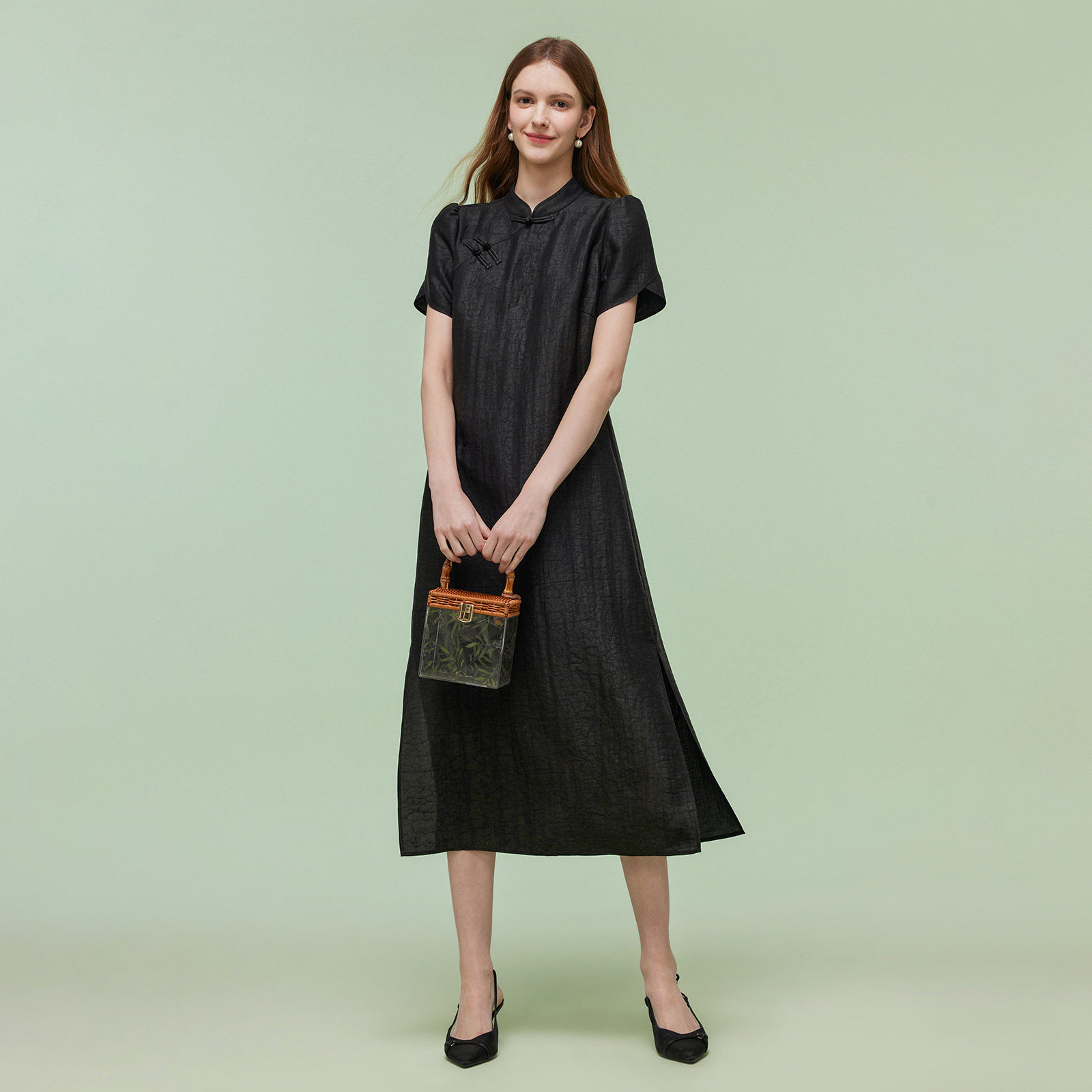 歌莉娅真丝连衣裙女夏新款 国风穿搭新中式 旗袍 非遗香云纱由