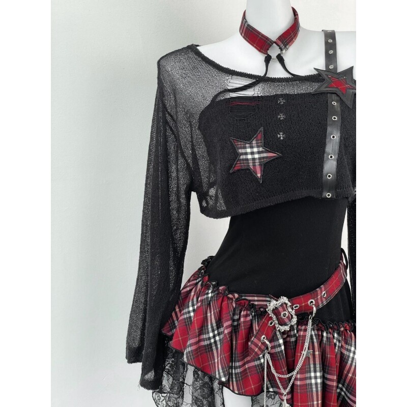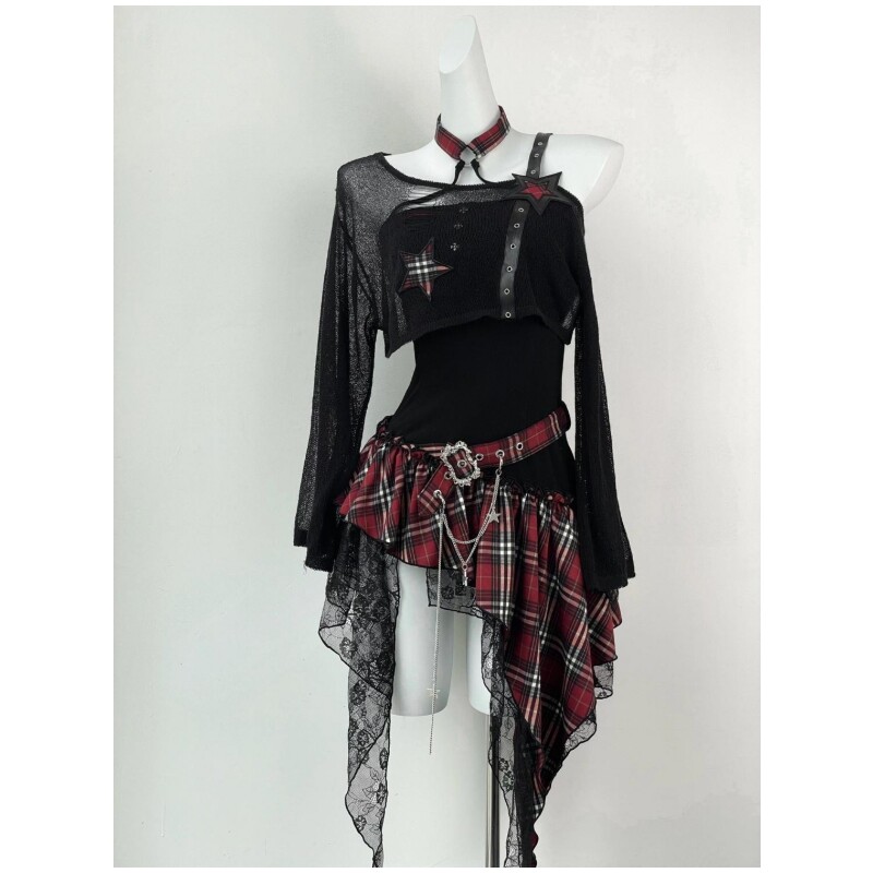 为您提供商品小众设计感辣妹风套装 不规则炸街挂脖连衣裙女 裙纯欲网纱短罩衫的详细介绍,