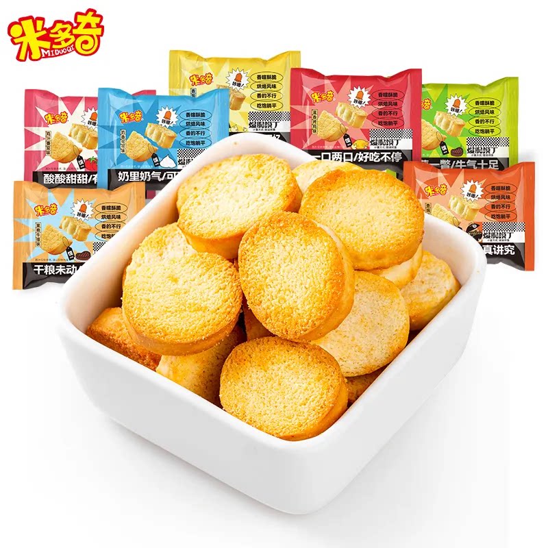为您提供商品开袋即食早餐解馋休闲食品 米多奇馍丁多口味烤香馒头片独立小包装的详细介绍,