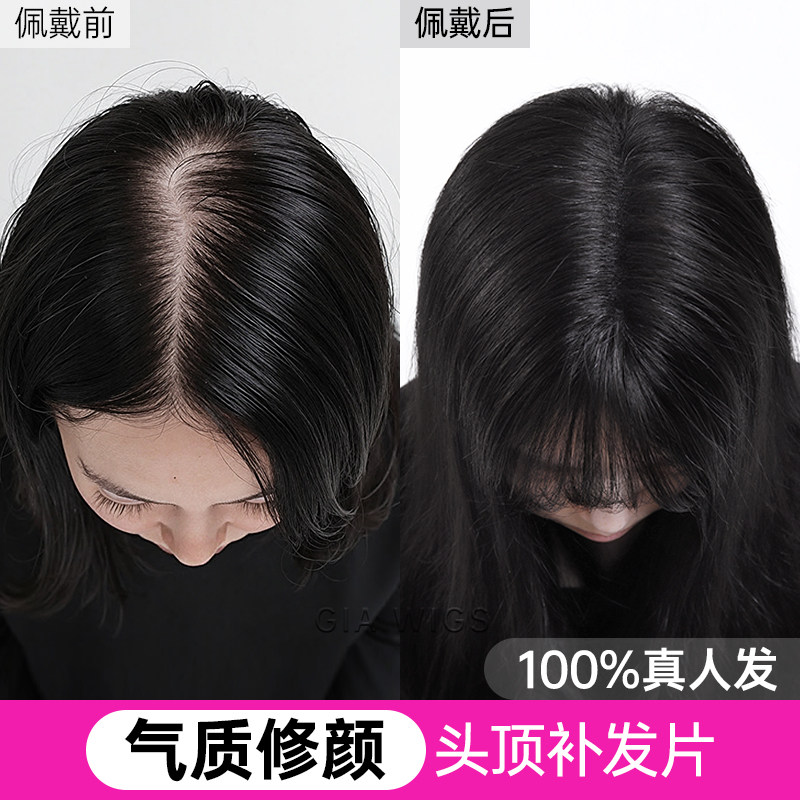 假发女片头顶增发量夏季 隐形遮白发神器蓬松高颅顶真发刘海片 薄款
