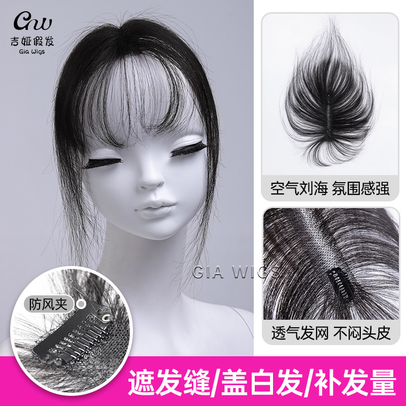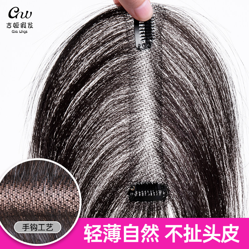 刘海片 高颅顶假发片女增发量蓬松真发遮头顶白发 双递针法式 美禾