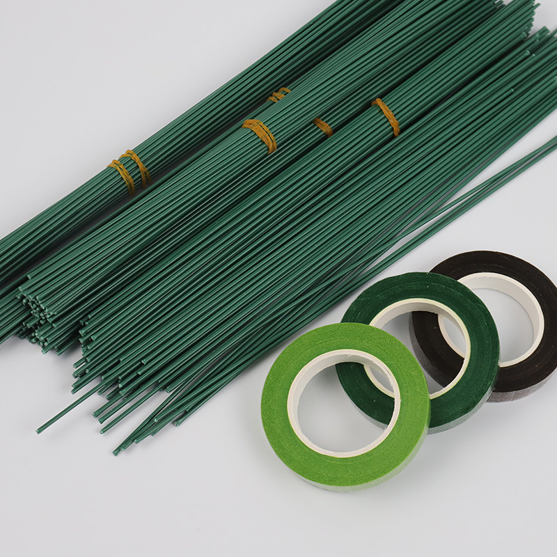 2号绿色花杆手工diy玫瑰花丝网花材料胶包绿铁丝花杆假花制作材料
