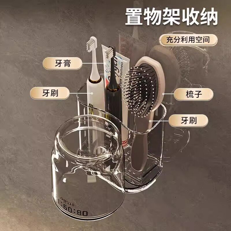 免打孔卫生间牙具座牙膏收纳浴室 牙刷牙杯壁挂置物架电动牙刷套装
