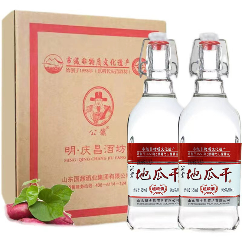 6瓶国产白酒 官方明庆昌酒坊山东沂蒙地瓜干就52度500ml2瓶