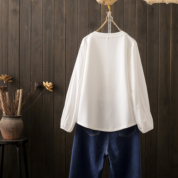 为您提供商品打底衫 女宽松藏肉休闲上衣 200斤胖mm简约百搭显瘦灯笼袖 春秋大码的详细介绍,