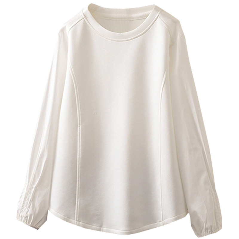 打底衫 女宽松藏肉休闲上衣 200斤胖mm简约百搭显瘦灯笼袖 春秋大码