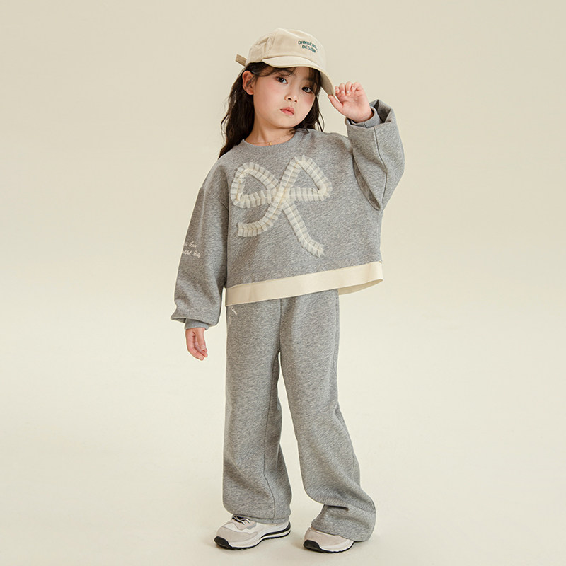 儿童洋气女宝宝套装 两件套2026年新款 女童春秋运动蝴蝶结卫衣卫裤
