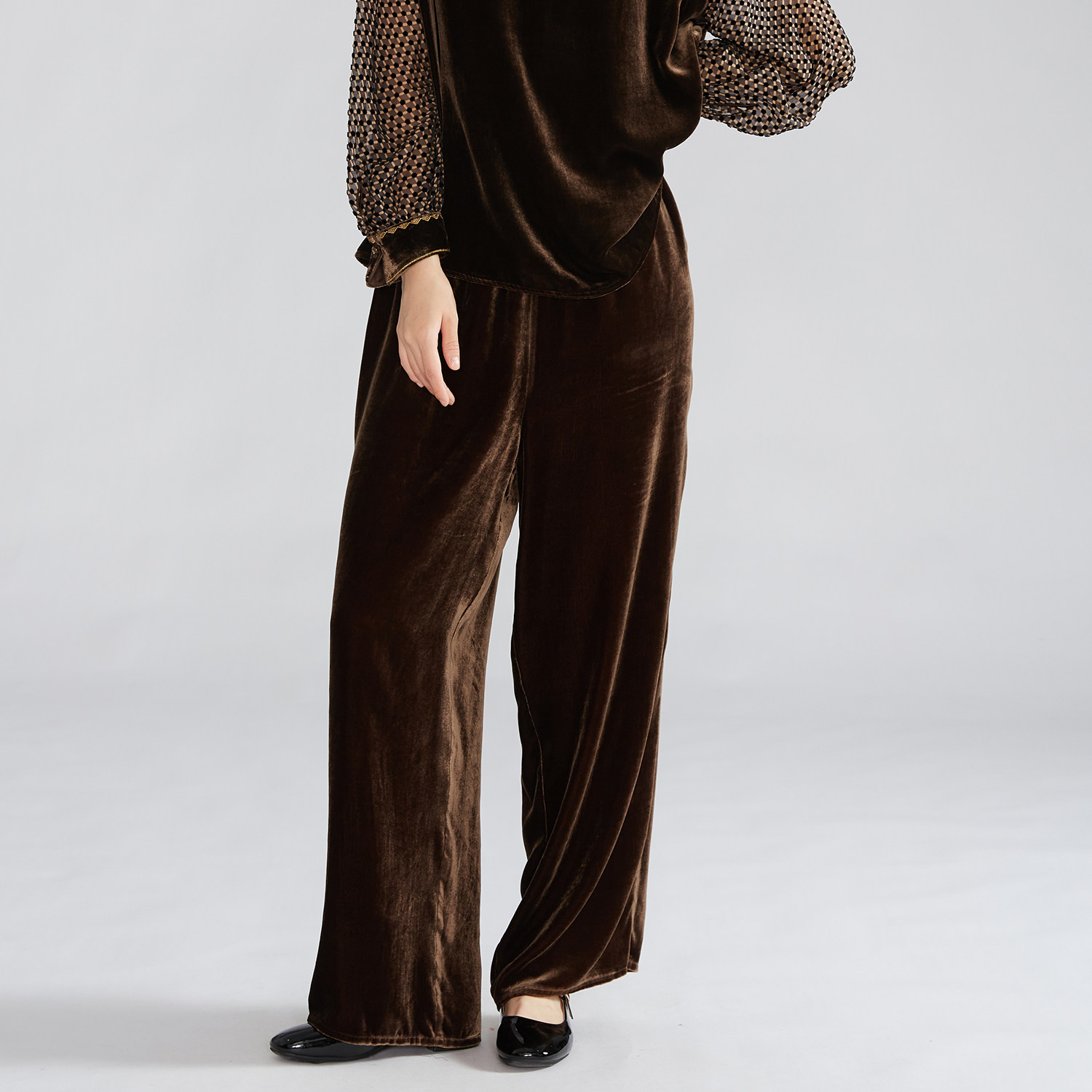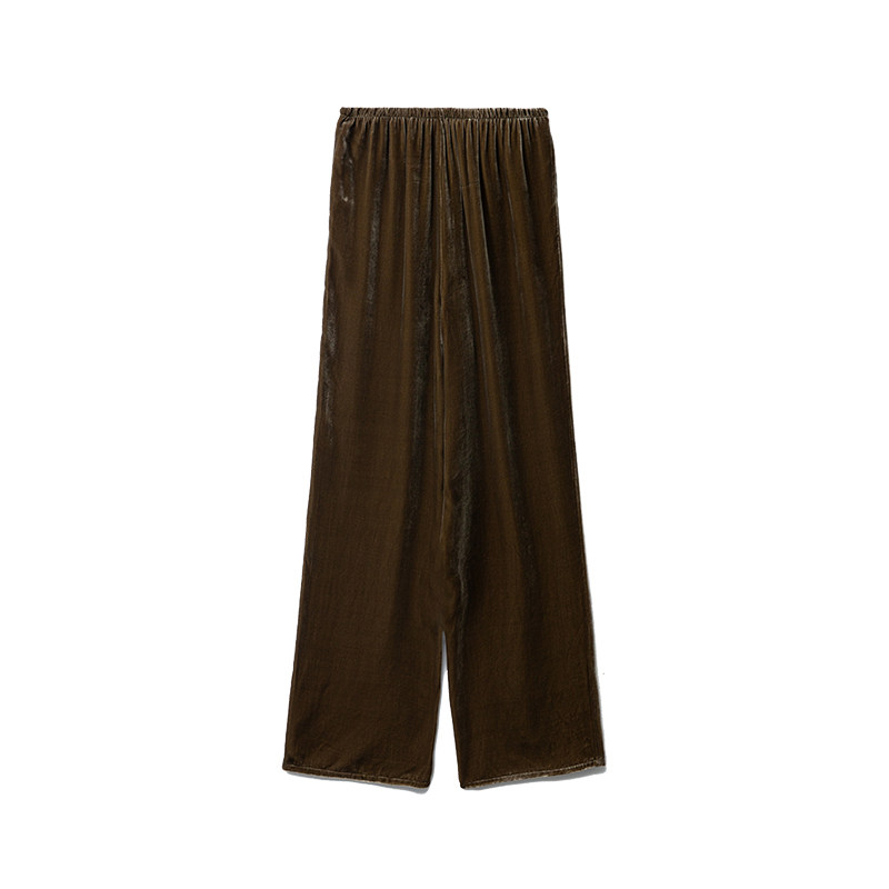 特惠 女显瘦长裤 直筒松紧腰休闲桑蚕丝裤 子 真丝丝绒阔腿裤